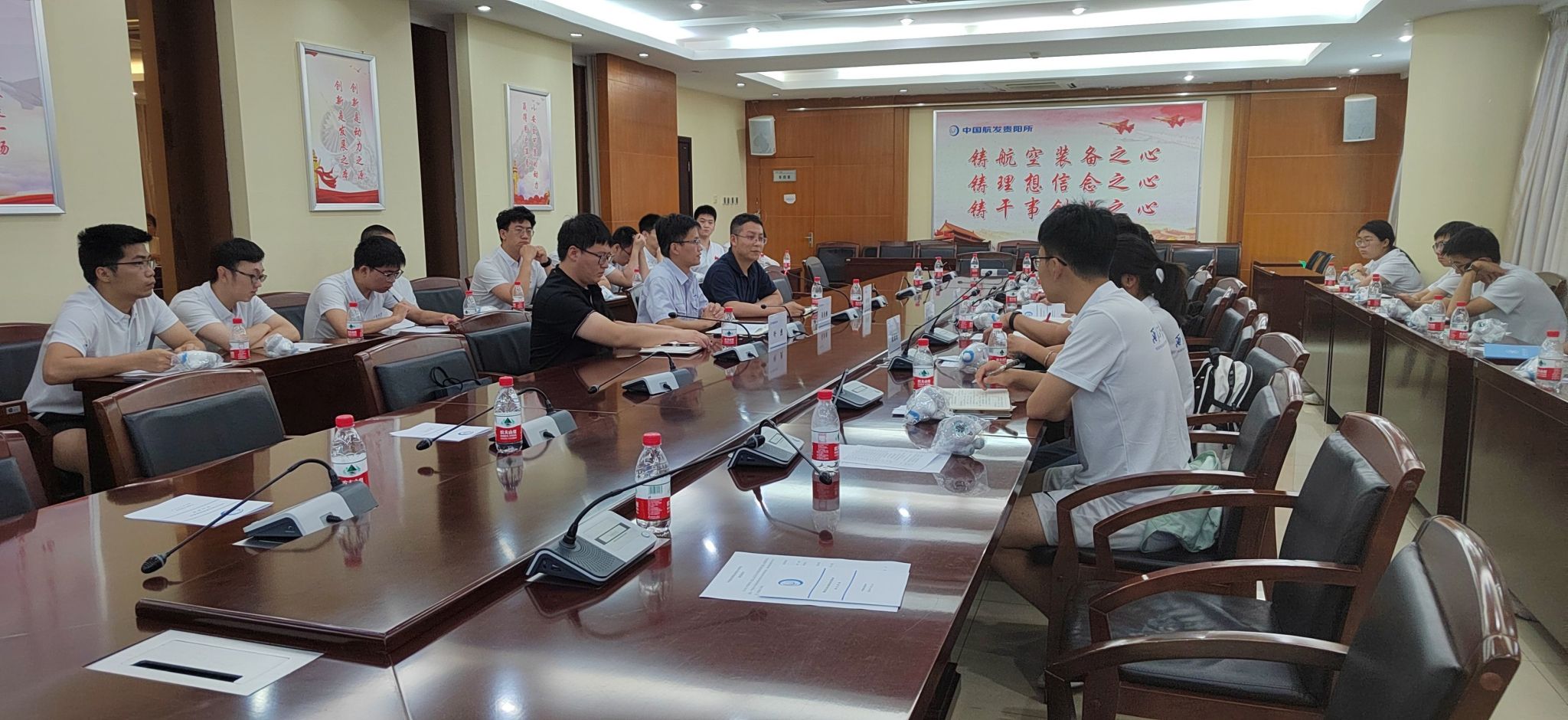 会议伊始,马永锋部长就“我心澎湃”实践队的到来致欢迎词,对本次参会人员进行了详细介绍,并播放贵阳所最新宣传片。马部长为实践队介绍了如今的贵阳所继承了三线建设时期的航发工业基础,建所以来取得了行业内发动机装机数量最多、市场份额最大的辉煌业绩。