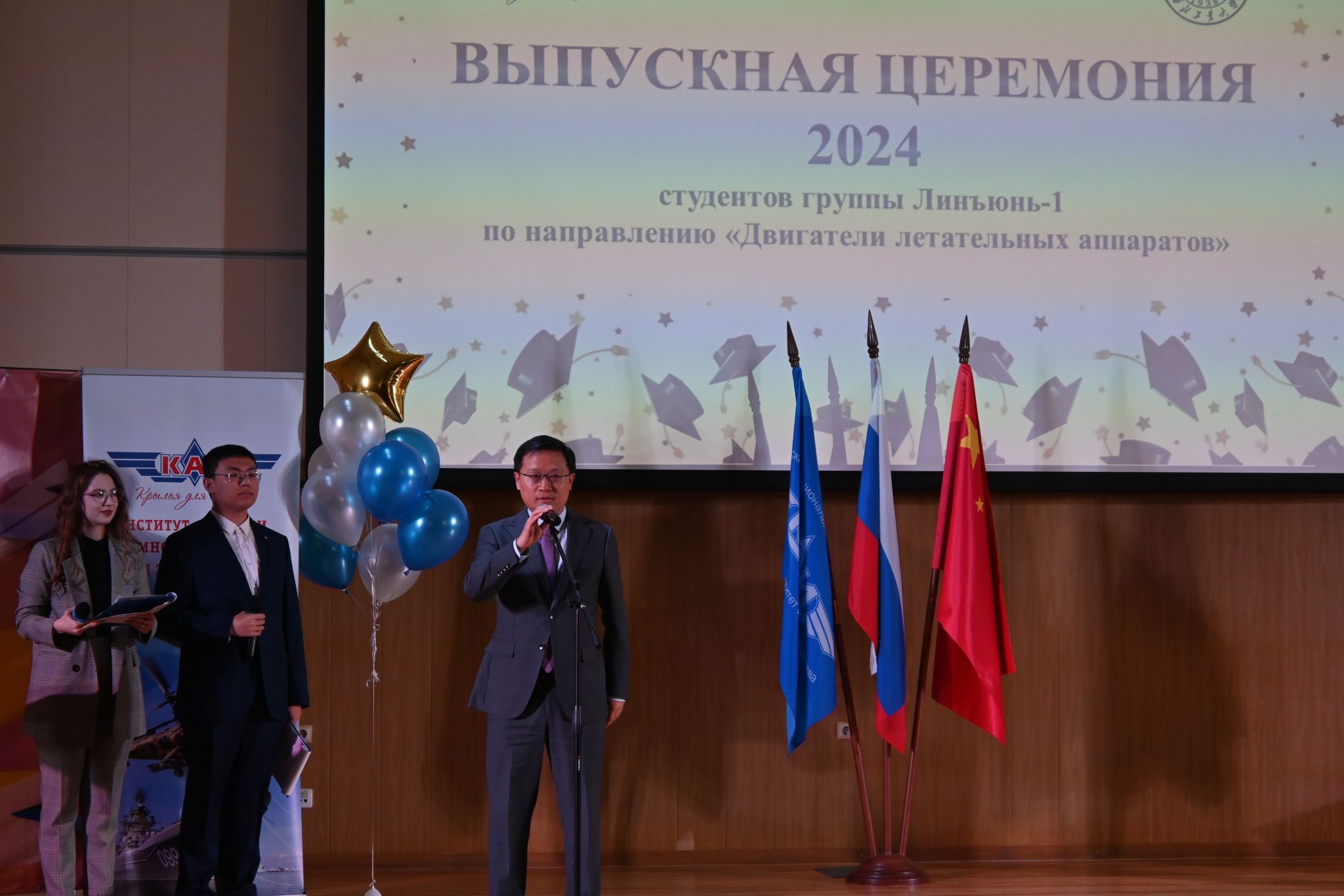 在这庄重而又温馨的典礼上,西北工业大学校长助理王宇波代表学校,向顺利完成学业的24位凌云学子们表达了最热烈的祝贺。他说,首届凌云班本科生的毕业,标志着两校合作进入了一个崭新而深远的实质性、深层次的新阶段。他寄语凌云学子们,在中俄两国优质教学资源的共同浇灌下,现在学有所成、学有所用,未来踔厉奋发,再启新程,勇敢追梦,定能在中国式现代化的伟大进程中绽放出绚丽的青春之花。