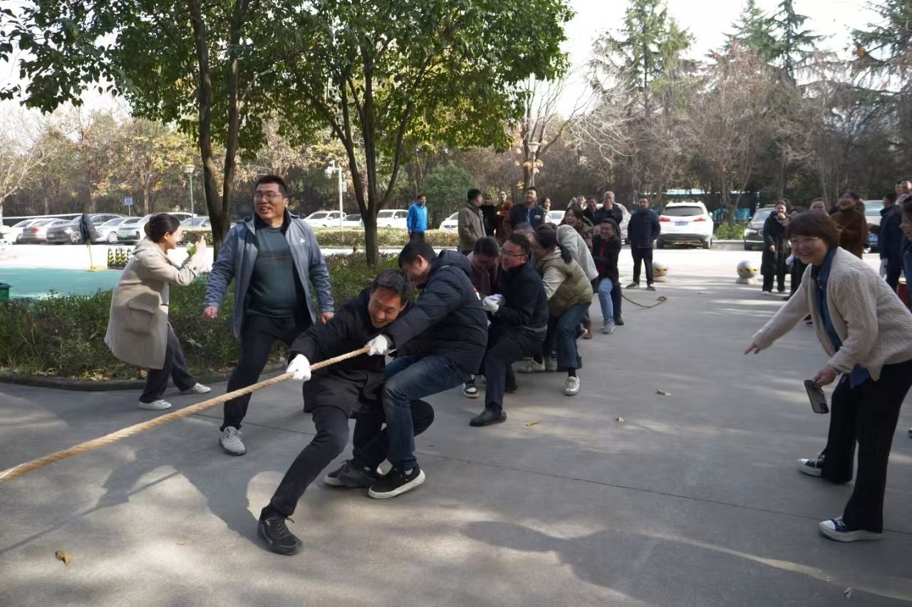 工会组织的教职工拔河比赛在学院院楼举行。此次活动旨在增强教职工体质,发扬体育精神,进一步增强学院的集体荣誉感。全院教职工积极响应,共组织五支队伍、八十余名队员参加比赛,现场气氛热烈,欢呼声此起彼伏。
