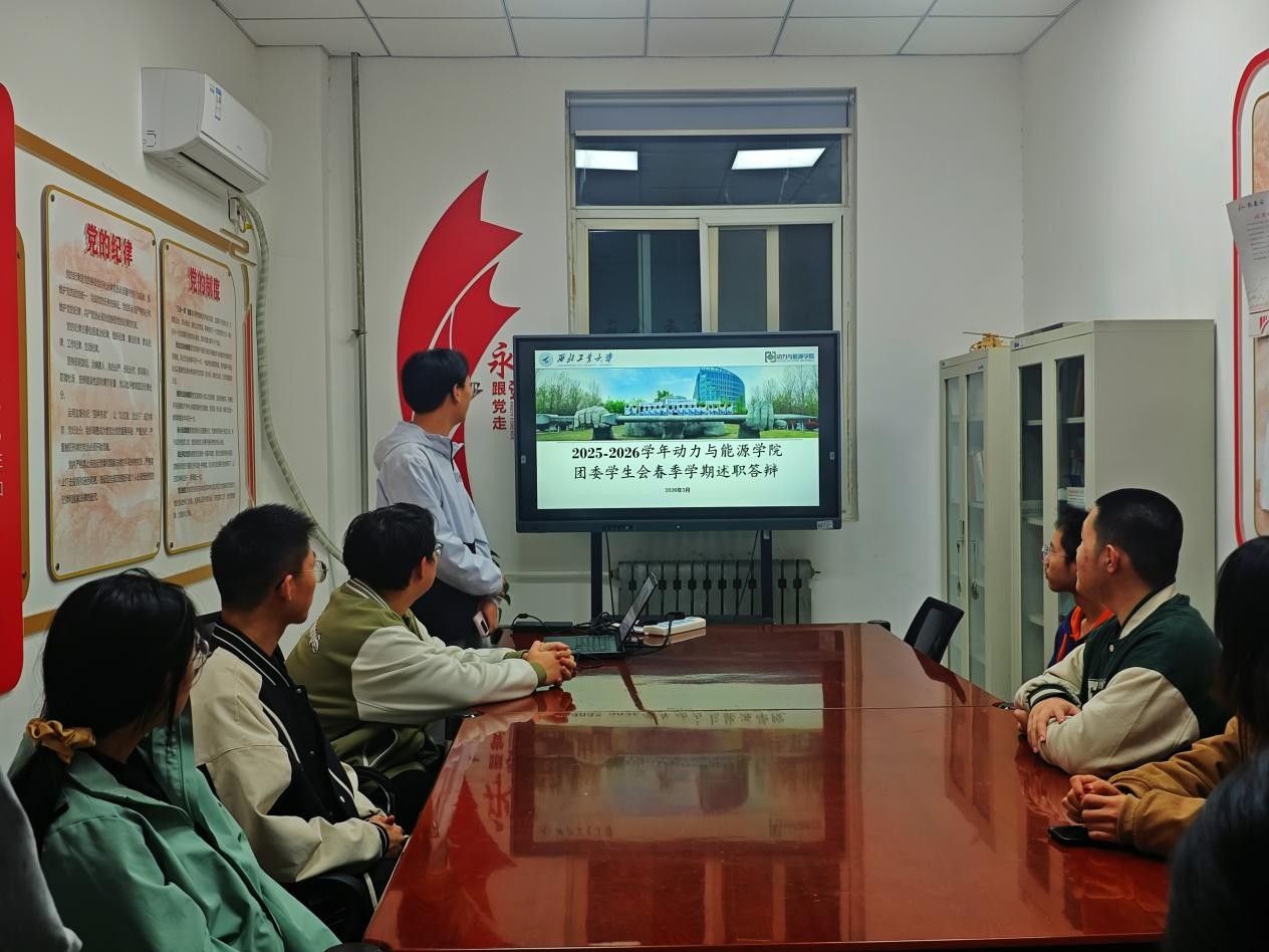 为全面总结学生会年度工作成效,梳理工作经验,反思存在不足,明确未来发展方向,进一步强化学生会组织建设,提升服务同学、凝聚同学的能力,近日,动能学院学生会述职答辩会在学院会议室顺利举行。学生会主席团成员、各部门负责人及各部门代表参加本次答辩会,共同见证学生会成员的成长与担当。