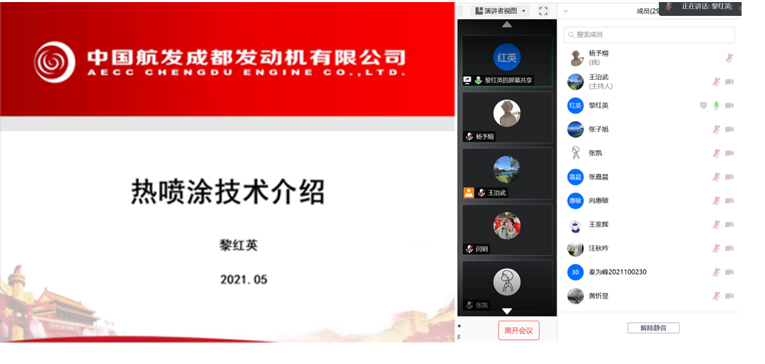 2021年5月23日,由中国航发成发一级技术专家黎红英老师主讲的“热喷涂技术介绍”专题讲座在线上举行。金沙赌场网站