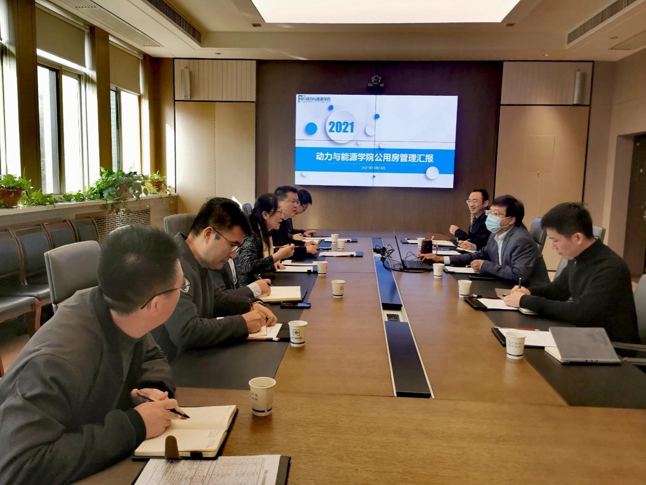 2021年10月18日,学校国有资产管理处处长张爽带领领导班子成员等一行7人到学院就公用房管理及核算相关事宜进行调研座谈交流。院长王占学、学院办公室人员等参加了会议。