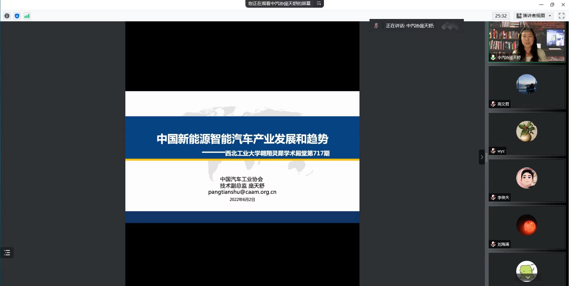 承办的翱翔“灵犀学术殿堂”第717期,在腾讯会议上成功举办。中国汽车工业协会技术部副总监庞天舒,应邀为我院师生做了题目为《中国新能源汽车和智能网联汽车产业发展和趋势》的专场报告会。金沙赌场网站