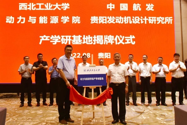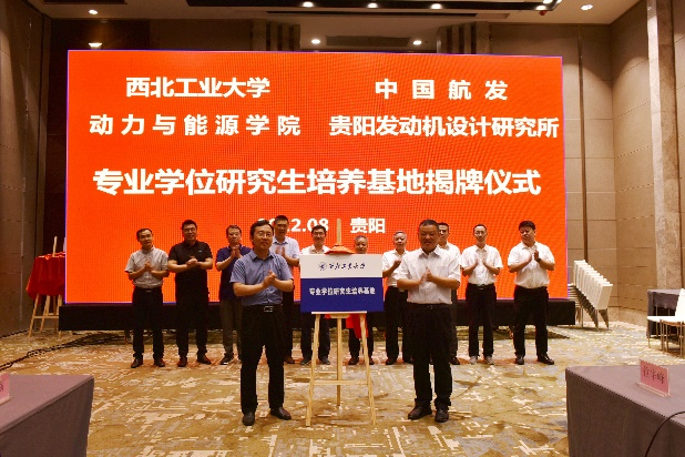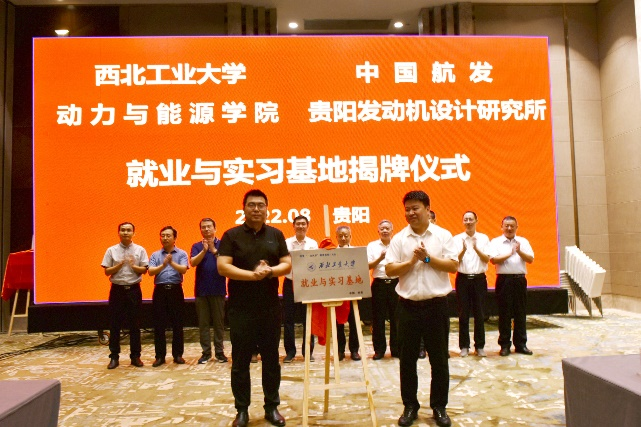 产学研基地”、“西北工业大学专业学位研究生培养基地”、“西北工业大学就业与实习基地”、“西北工业大学--中国航发贵阳所整机试验联合试验室”揭牌仪式。