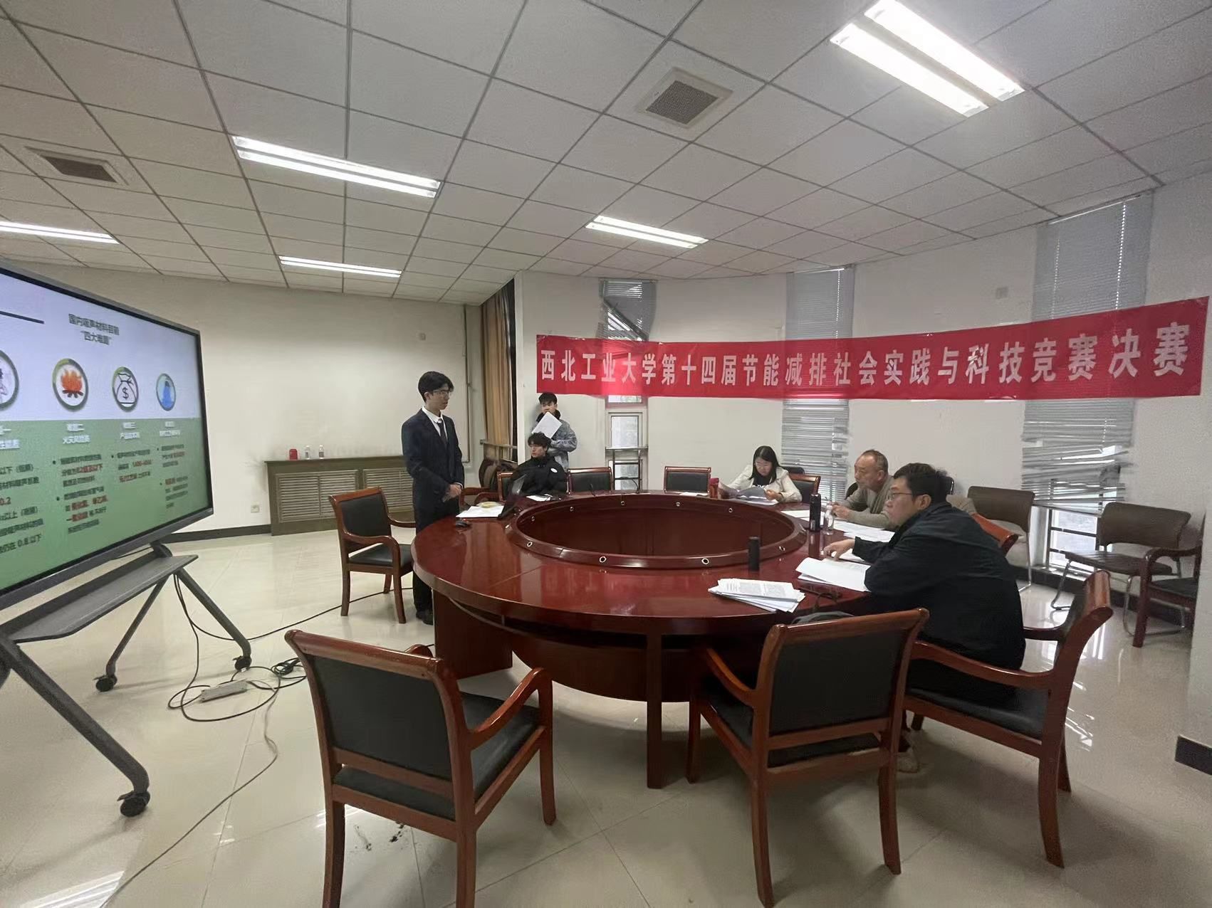 本次比赛严格遵守公平公正的原则,决赛答辩期间,全体参赛学生围绕“节能减排、绿色能源”主题进行了答辩与作品展示。每个队伍答辩人员思路清晰、逻辑合理、全面和细致地展示了作品的完成情况,充分展示了作品创新性与节能减排效果。最后,评委老师们对全体参赛学生的作品均给予中肯的评价以及一定的鼓励,希望他们能够再接再厉,不断取得新的突破,更加全面深入地落实节能减排实践。经过专家评审、小组讨论、评审合议等环节将选拔出本届竞赛的获奖作品。下一步,将选拔优秀作品代表学校参加“全国大学生节能减排社会实践与科技竞赛”。