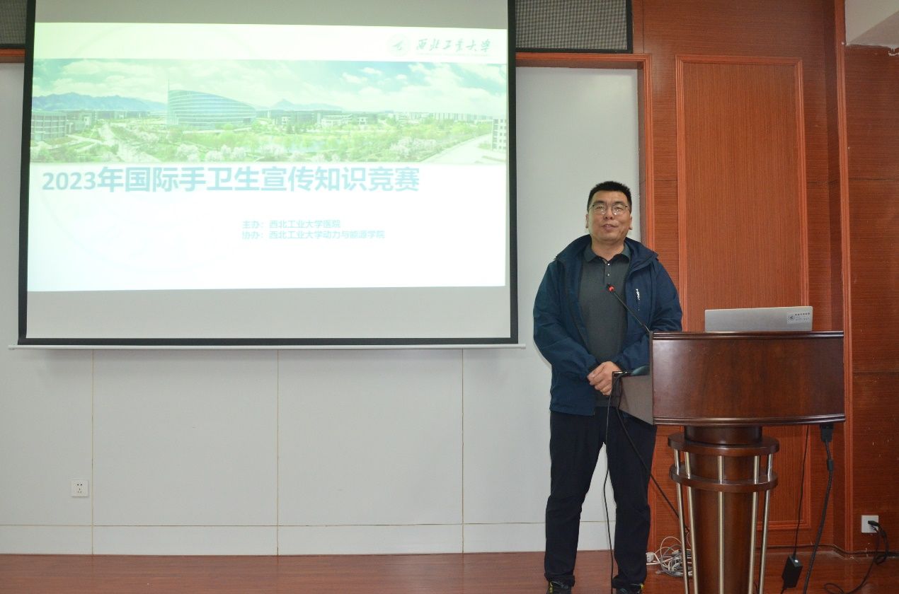 协同西北工业大学校医院于5月5日在学院225会议室举办了2023年国际手卫生宣传知识竞赛,校医院党委书记乔辉、副院长何凯亮、动能学院党委副书记刘海涌等我院师生及医护人员参加了本次活动。