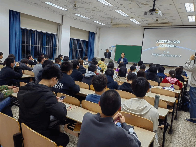 在2022-2023春季学期积极推进本科生课堂教学改革,联合一线审定人员合作建设了总师进课堂系列课程—《运输类飞机动力装置适航审定》。该课程邀请中国民用航空上海航空器适航审定中心动力装置室李新研究员等多名一线审定人员,围绕动力装置的适航审定内容全面展开,课程全程由一线的审定人员主讲。各位专家结合具体型号适航审定技术研究与审查实践,给同学们讲解了大型客机动力装置防冰、防火、防爆、转子失效等多个方面的技术细节和审定要求。报告内容既紧密结合工程需求,又充分考虑了学生的理论背景知识,让同学们深刻感受到了所学的课本知识如何应用到工程实际中去,如何用理论去指导实践,极大地拉近了课堂与科研一线的距离,提升了学生们工程认知能力,激发了同学们学习的兴趣。