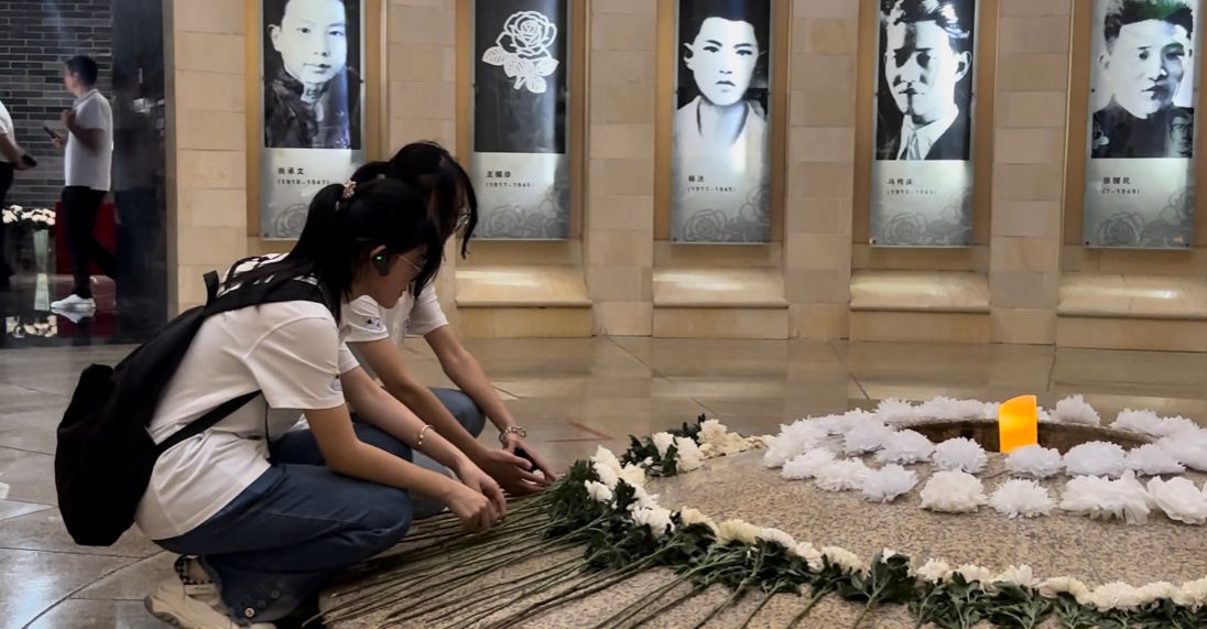 在缅怀厅,实践队员献花以缅怀先烈,表达对先烈崇高敬意。