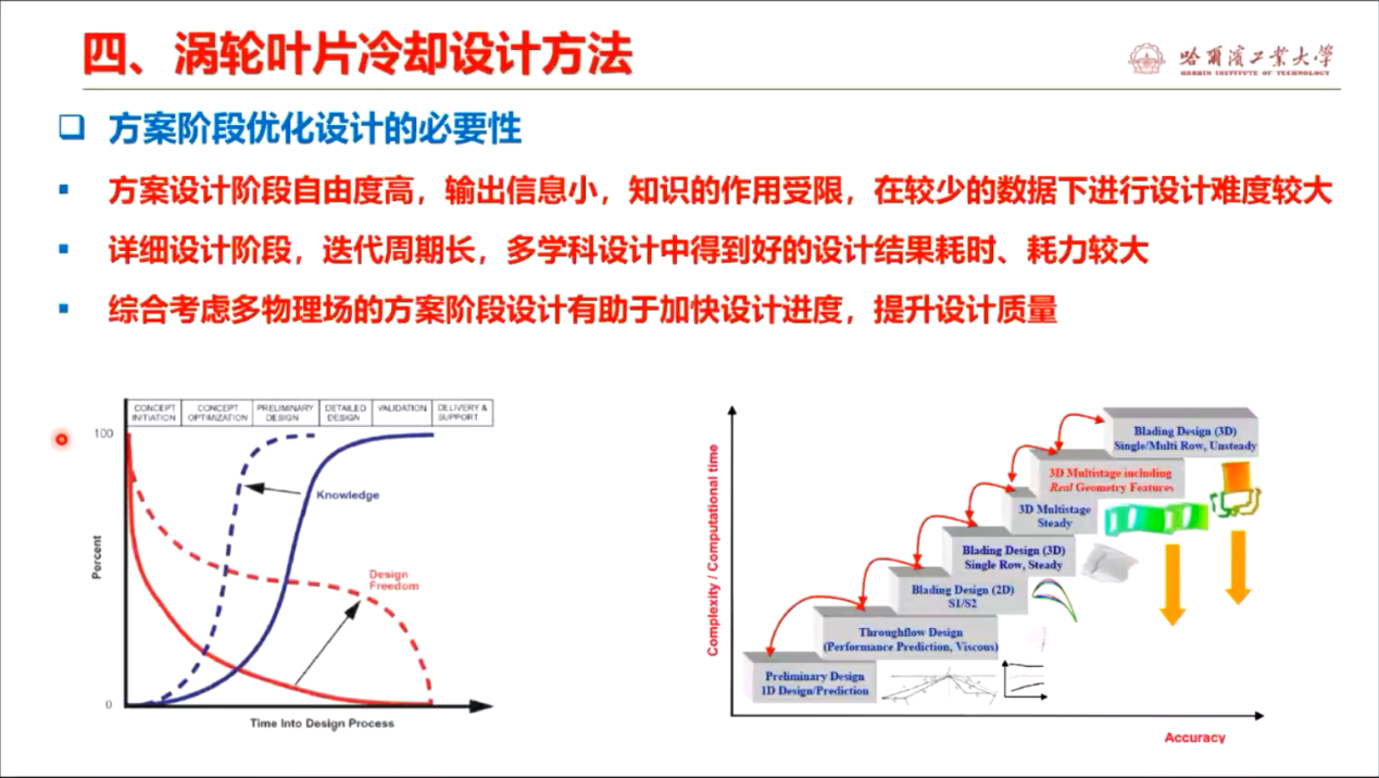 罗磊教授首先介绍了自己的科研历程。介绍了所在团队在发展高效换热强化方法,气热耦合设计依据,建立设计技术三个方面的学术情况。接着介绍了涡轮叶顶冷却存在的技术难点,结合实验与数值模拟研究给出了面向涡轮叶顶强掺混条件下内外流相互耦合作用机制,进而确定了内部换热强化工程设计和及面向涡轮叶顶气膜冷却改进设计方向,并对团队在这两方面的研究成果进行了讲解。最后介绍了涡轮叶片冷却设计方法,说明了方案阶段优化设计的必要性,对国内外已有的设计系统进行了介绍,并从典型航空发动机部件建模技术、高精度自动化分网技术、低维度/快速气动与传热等三个方面对团队的研究成果进行了详解。