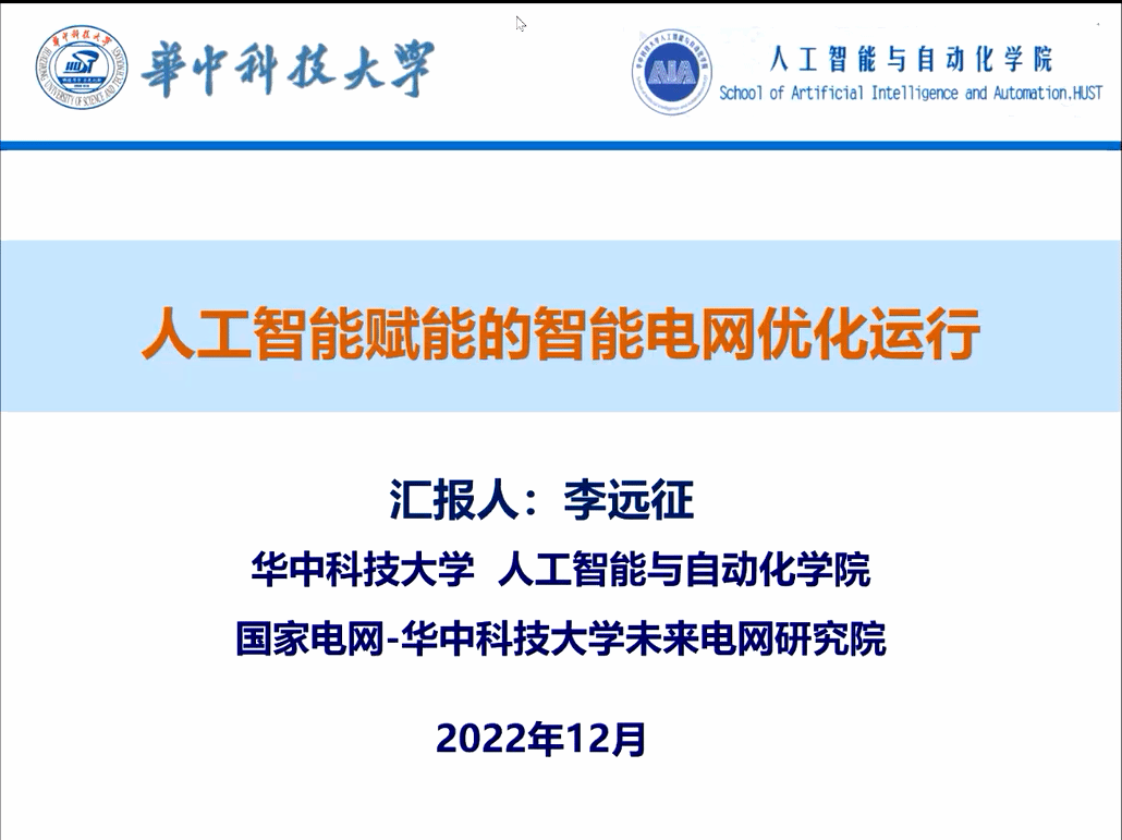 2022年12月17日上午10点,应西北工业大学陈映雪副教授邀请,华中科技大学人工智能与自动化学院李远征副教授围绕《人工智能赋能的智能电网优化运行》进行了一场精彩的学术报告。