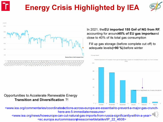 首先Jiří Jaromír Klemeš教授表示当今世界面临着严重的能源危机,许多国家对能源进行战略性储存。欧盟每年都需要进口大量的天然气,以应对其能源缺口,其进口量占到了每年消耗的40%,与此同时,对于可替代能源的迫切需求加速了可再生能源的转型和多元化的能源结构形成。